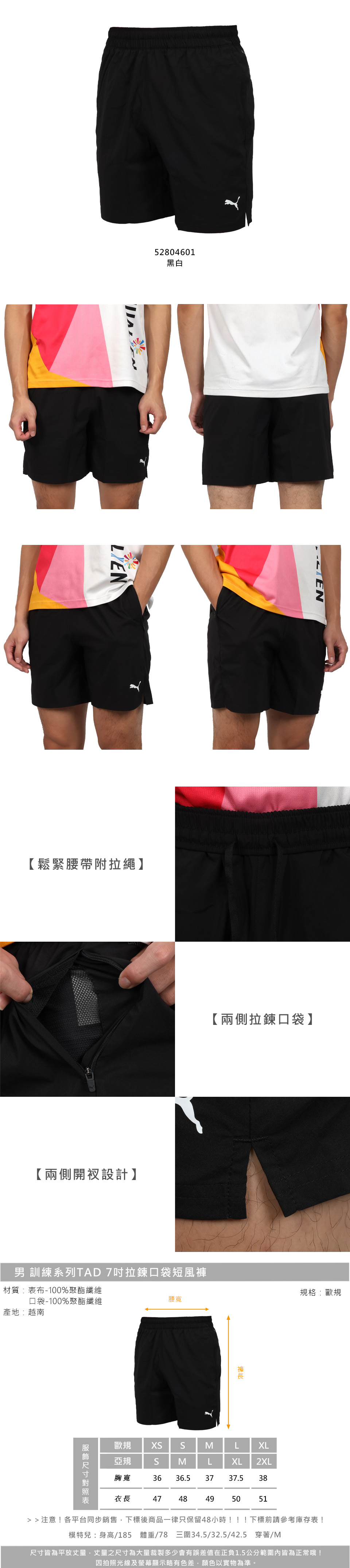 PUMA 男款訓練系列TAD 7吋拉鍊口袋短風褲  52804601 - 黑白