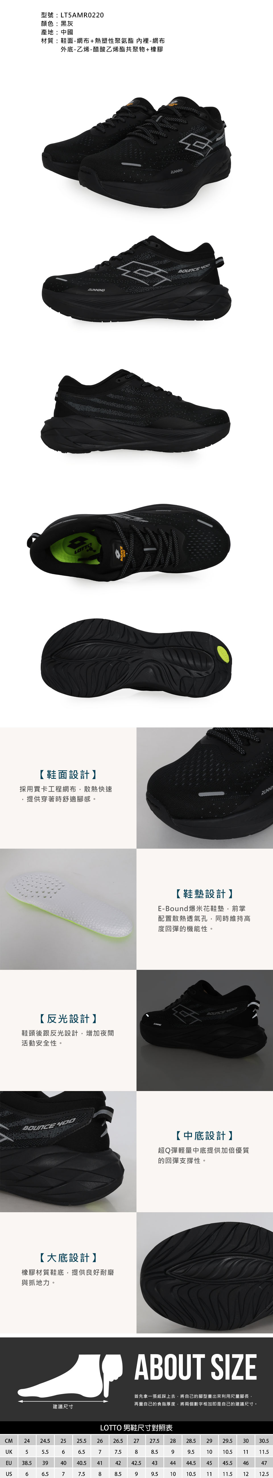 LOTTO 男款透氣輕量慢跑鞋  LT5AMR0220 - 黑灰