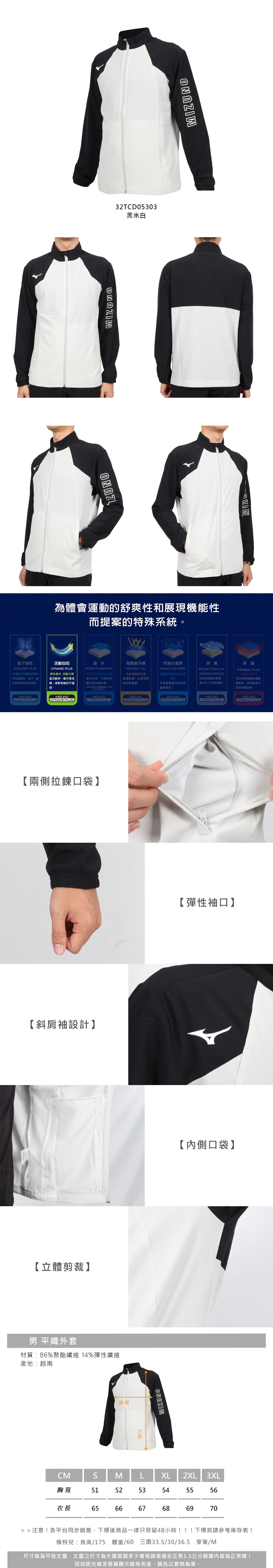 MIZUNO 男款平織外套  32TCD05303 - 黑米白