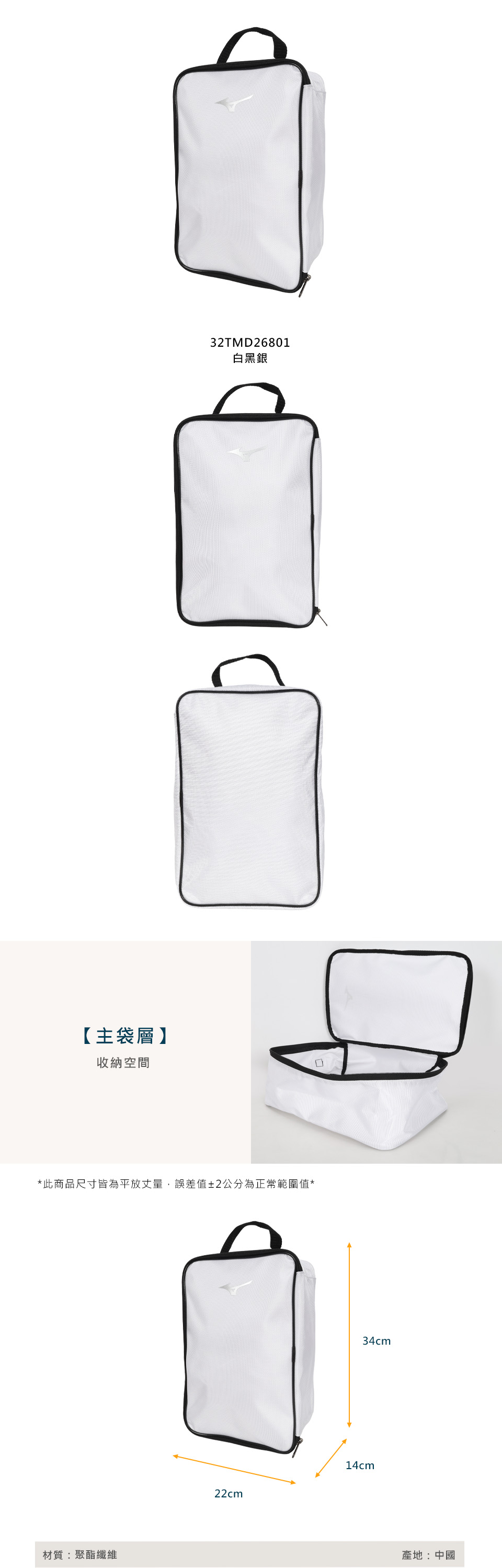 MIZUNO 多功能運動袋  32TMD26801 - 白黑銀