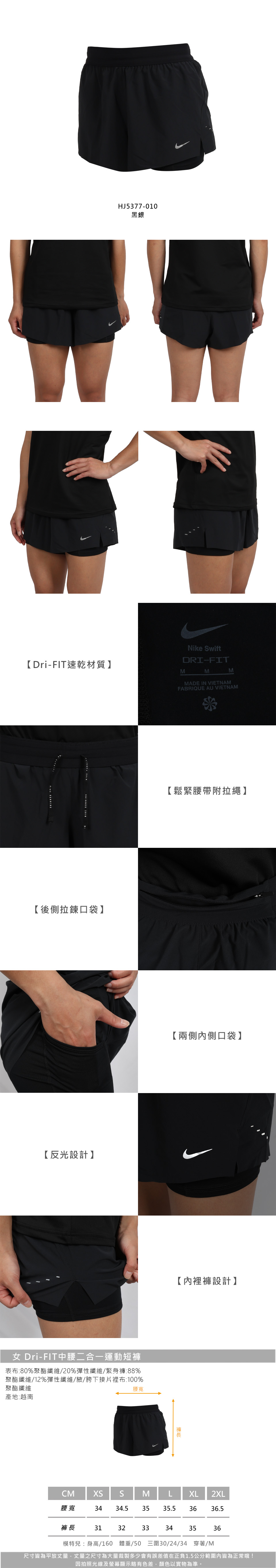 NIKE 女款Dri-FIT中腰二合一運動短褲  HJ5377-010