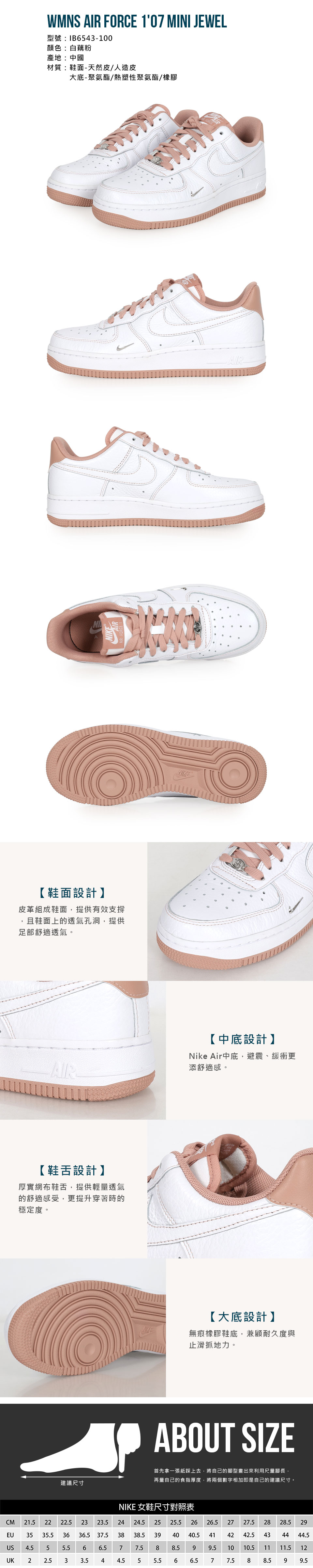 NIKE 女款運動休閒鞋  @WMNS AIR FORCE 1'07 MINI JEWEL@ IB6543-100 - 白藕粉