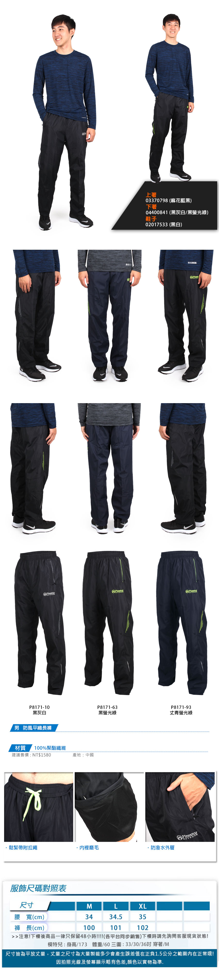 FIRESTAR 男款防風平織長褲  P8171-93 - 丈青螢光綠