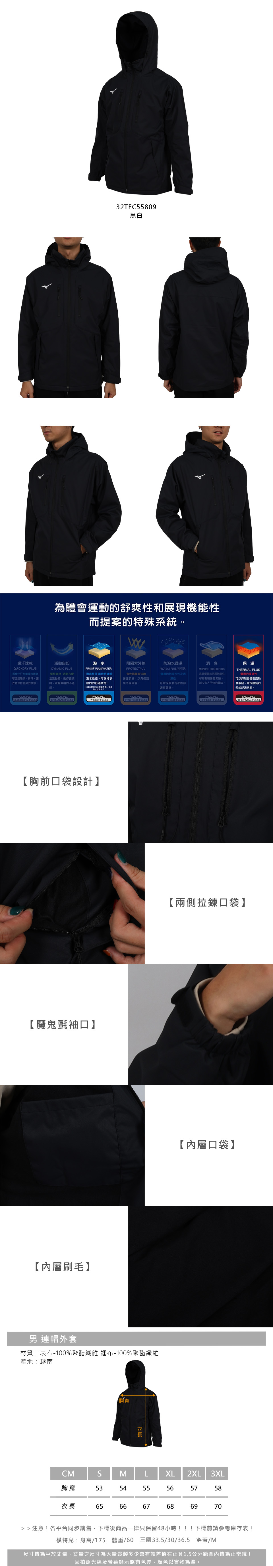 MIZUNO 男款連帽外套  32TEC55809 - 黑白