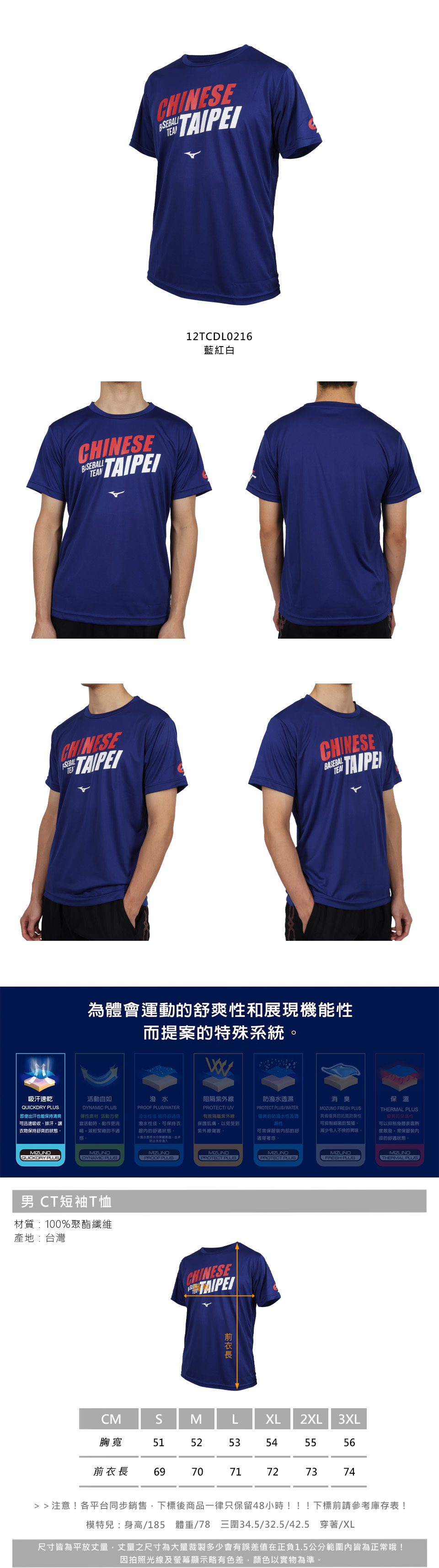 MIZUNO 男款CT短袖T恤  12TCDL0216 - 藍紅白