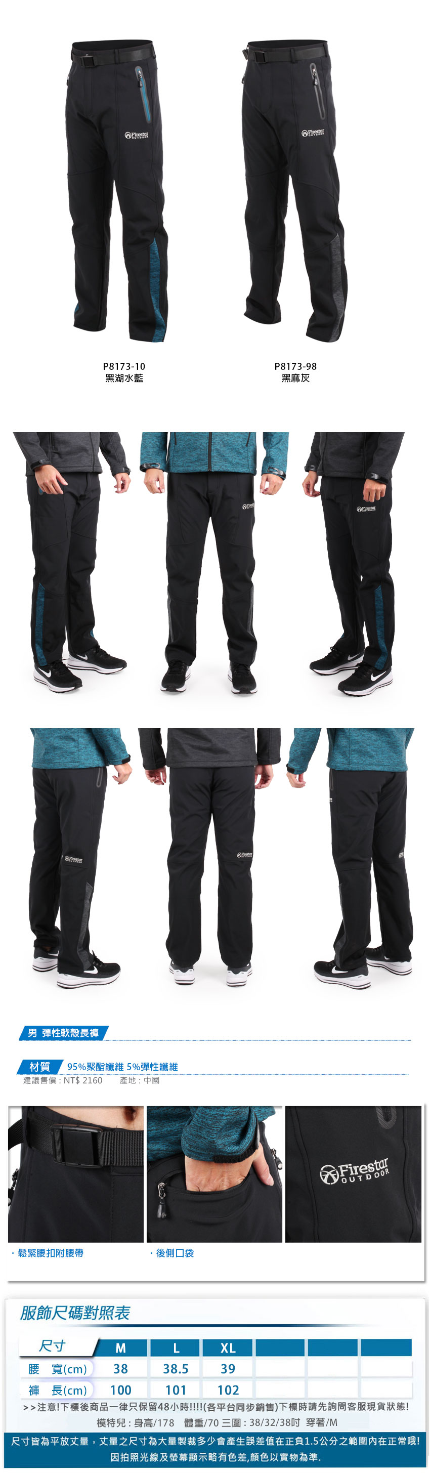 FIRESTAR 男款彈性軟殼長褲  P8173-10 - 黑湖水藍