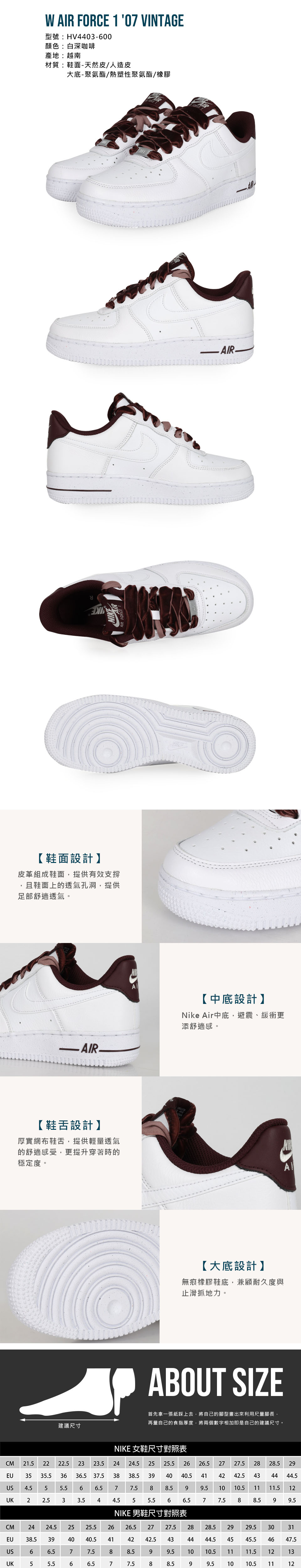 NIKE 男女款運動休閒鞋  @W AIR FORCE 1 '07 VINTAGE@ HV4403-600 - 白深咖啡