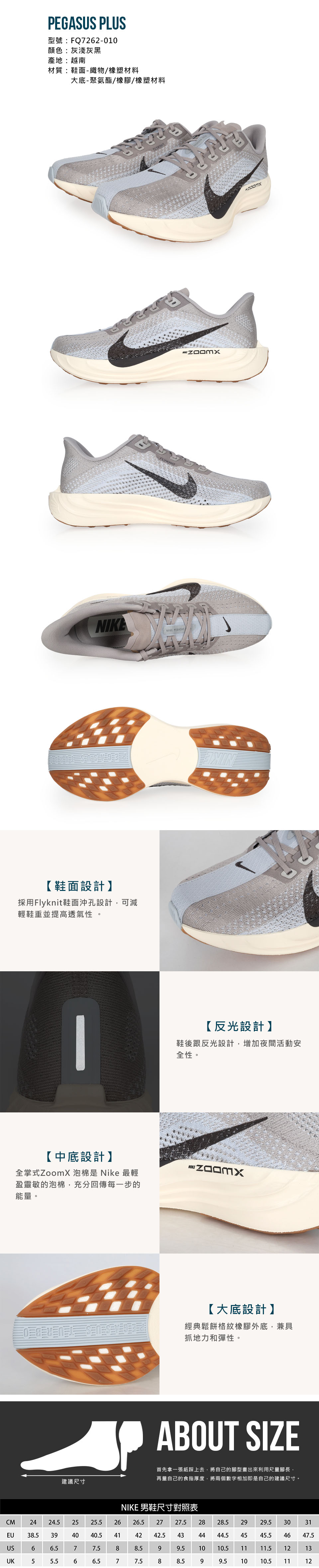 NIKE 男款回彈緩震慢跑鞋  @PEGASUS PLUS@ FQ7262-010 - 灰淺灰黑