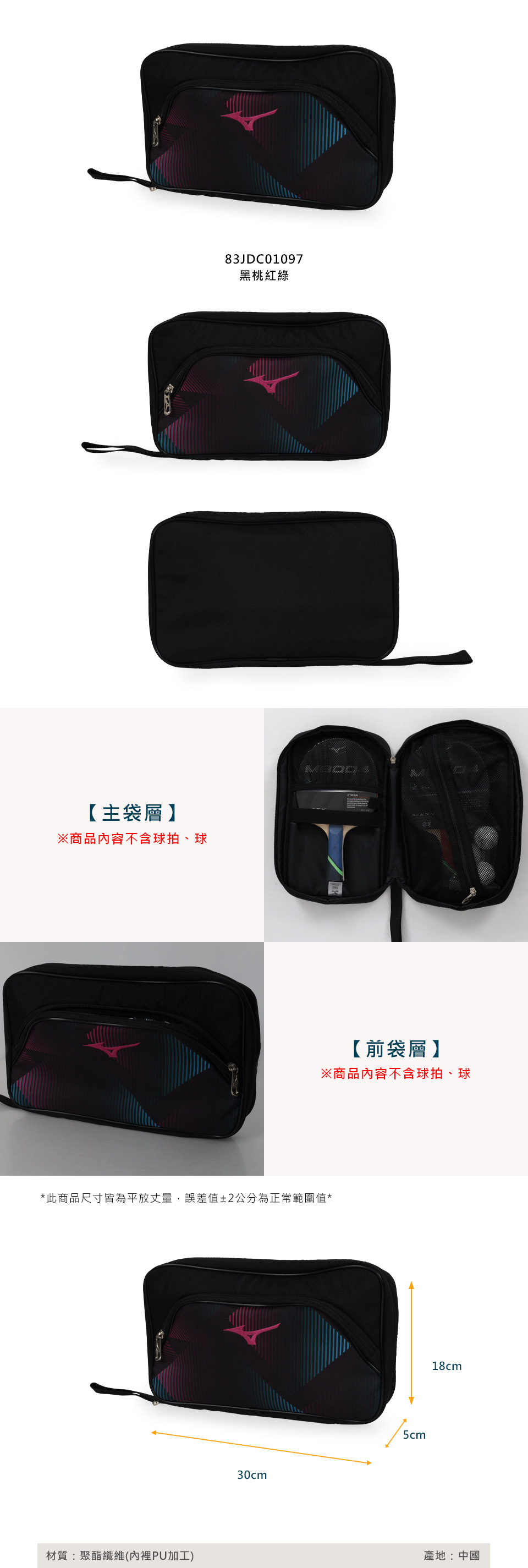 MIZUNO 2支裝桌球拍包  83JDC01097 - 黑桃紅綠