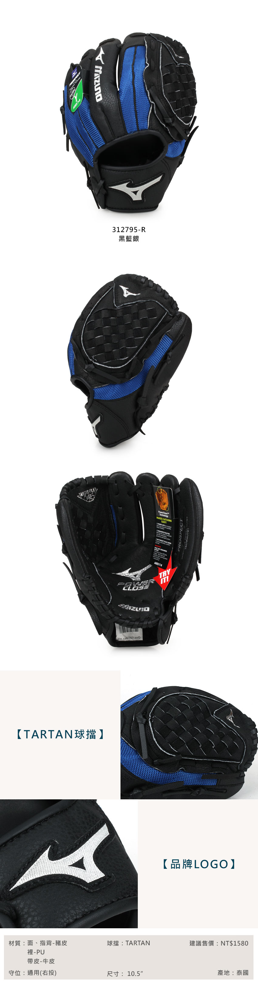 MIZUNO 少年用手套(右投) 312795-R - 黑藍銀