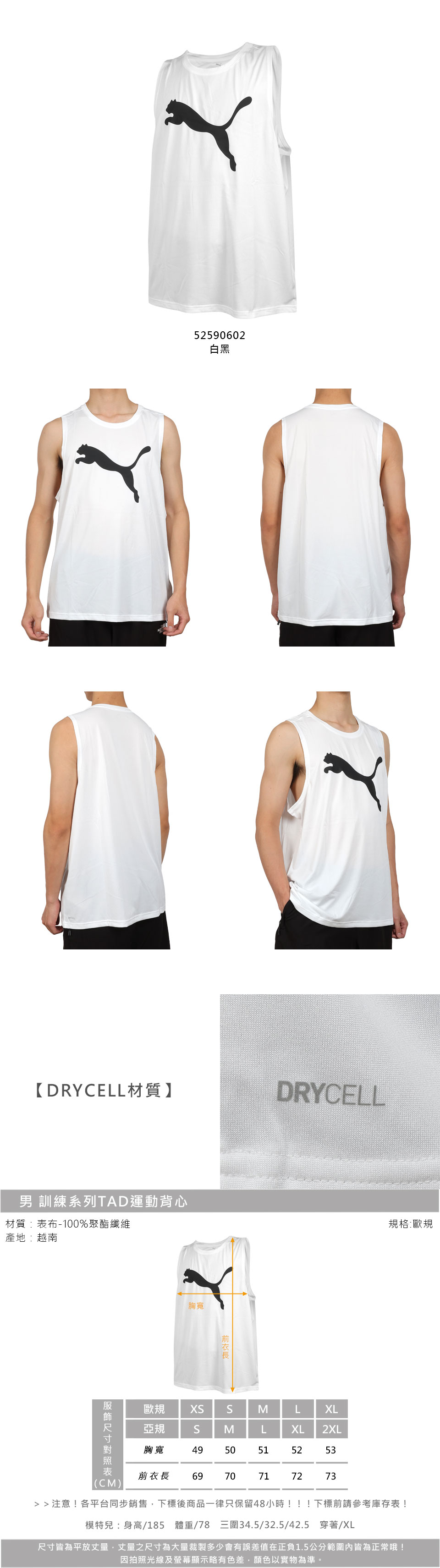 PUMA 男款訓練系列TAD運動背心  52590602 - 白黑