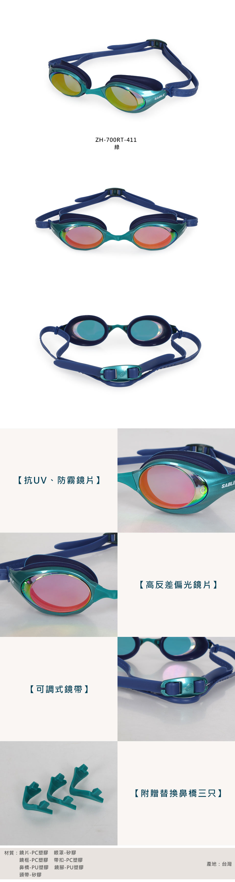 SABLE 隼系列-競速款高反差偏光平光泳鏡  ZH-700RT-411