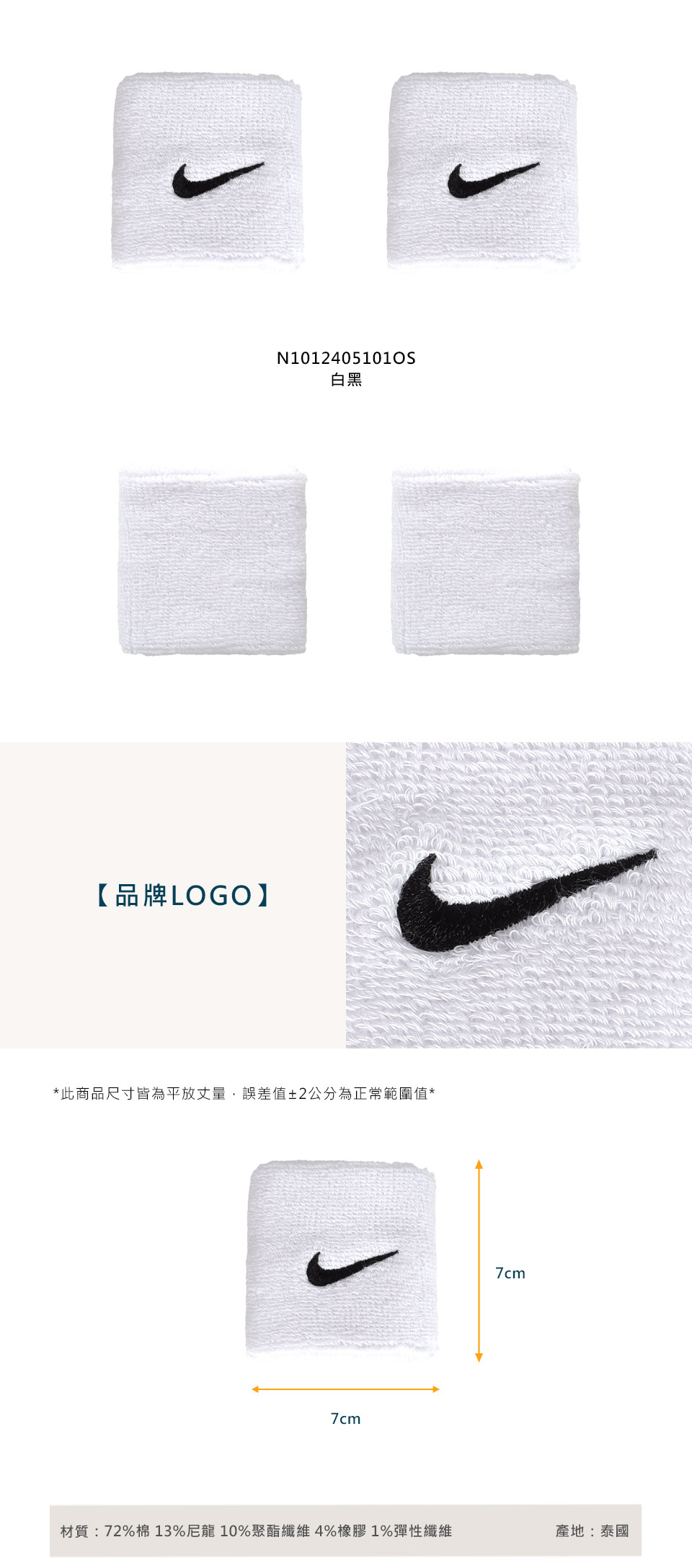 NIKE SWOOSHCLASSIC腕帶  N1012405101OS - 白黑