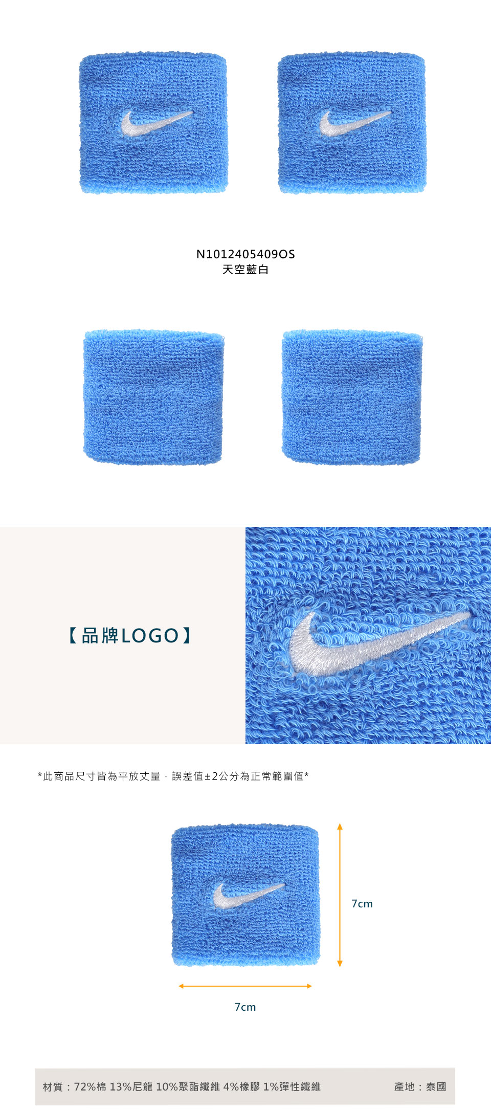 NIKE SWOOSHCLASSIC腕帶  N1012405409OS - 天空藍白