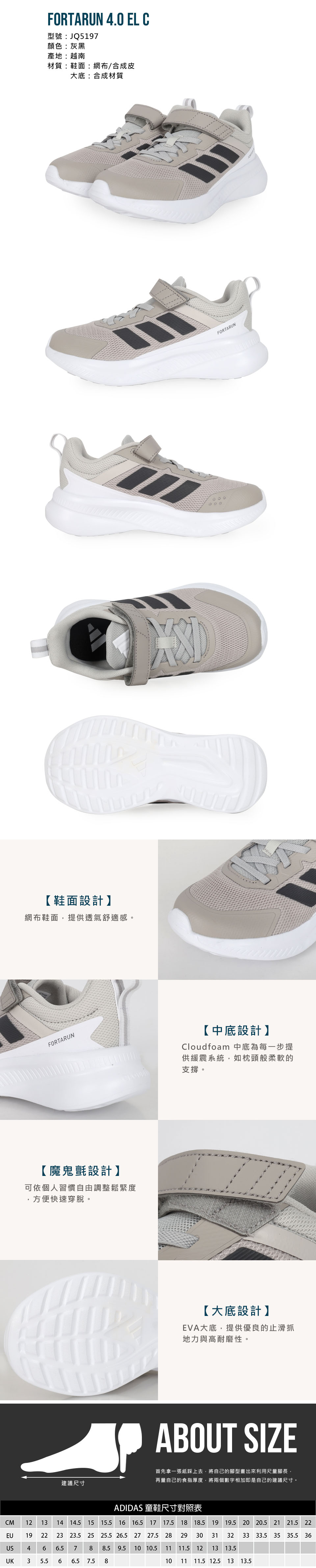 ADIDAS 中童運動鞋  @FortaRun 4.0 EL C@ JQ5197 - 灰黑