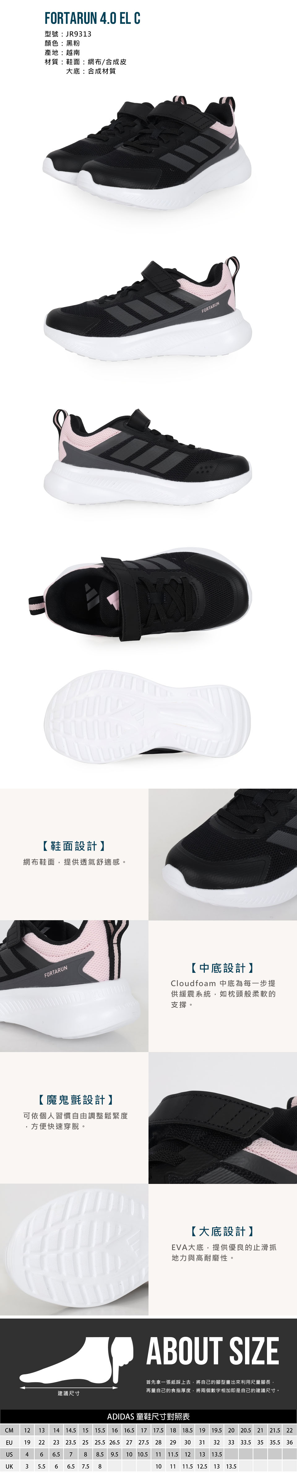 ADIDAS 中童運動鞋  @FortaRun 4.0 EL C@ JR9313 - 黑粉