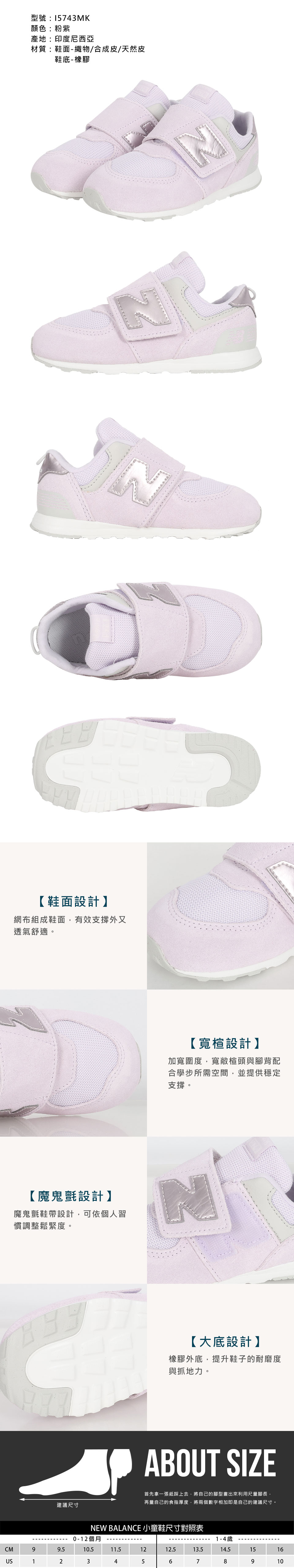 NEW BALANCE 小童復古慢跑鞋-WIDE  @574@ I5743MK - 粉紫