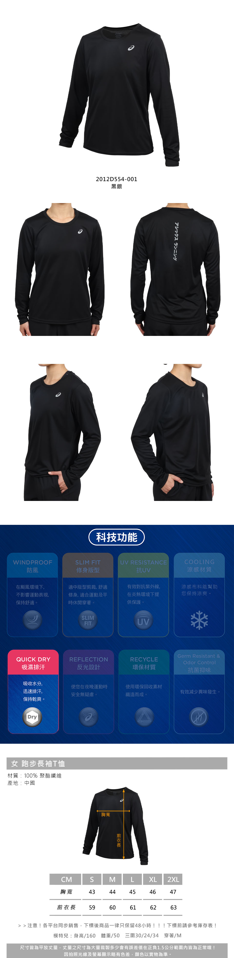 ASICS 女款跑步長袖T恤  2012D554-001 - 黑銀