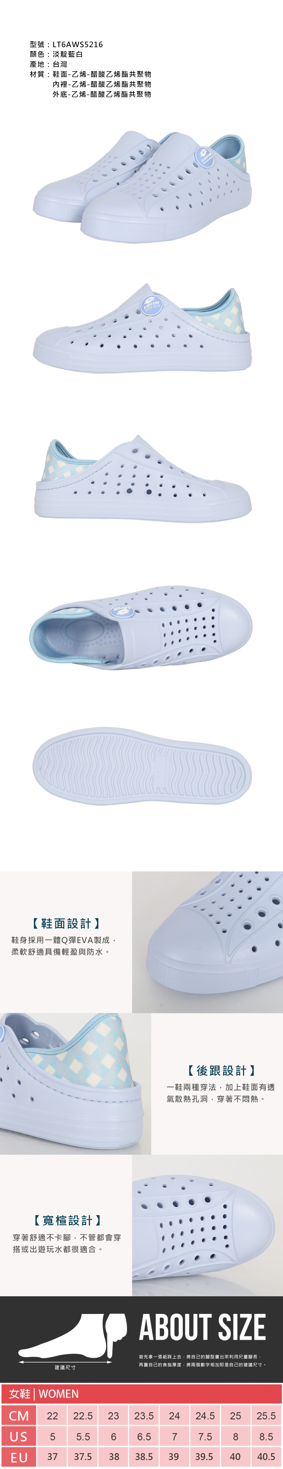 LOTTO 女款晴雨兩用輕量洞洞鞋  LT6AWS5216 - 淡靛藍白