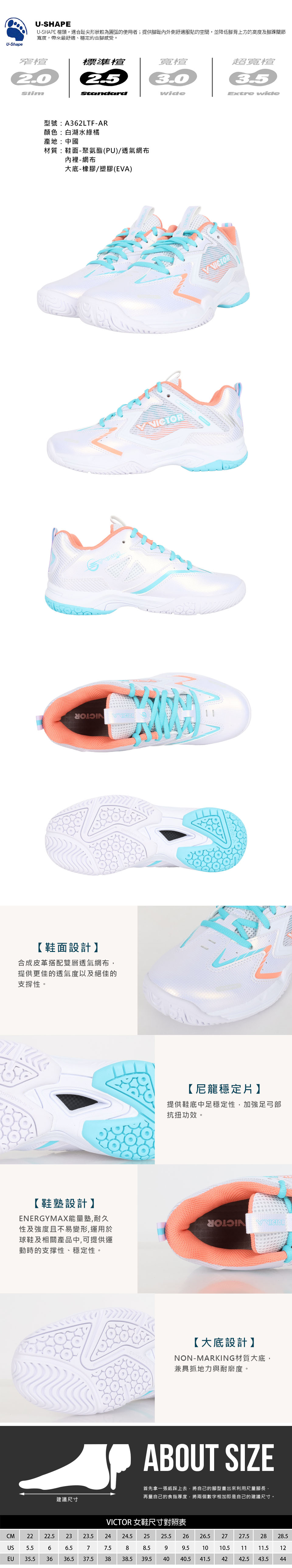 VICTOR 女款羽球鞋  A362LTF-AR - 白湖水綠橘
