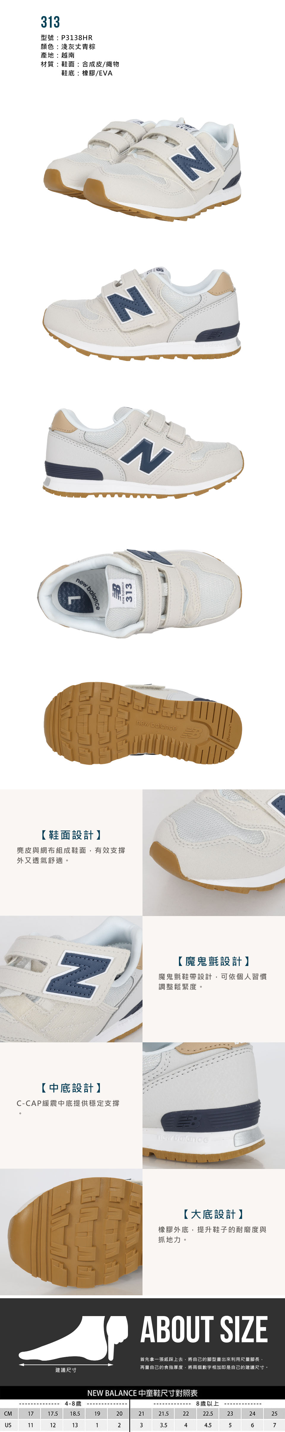 NEW BALANCE 中童運動鞋  @Hi@ P3138HR - 淺灰丈青棕