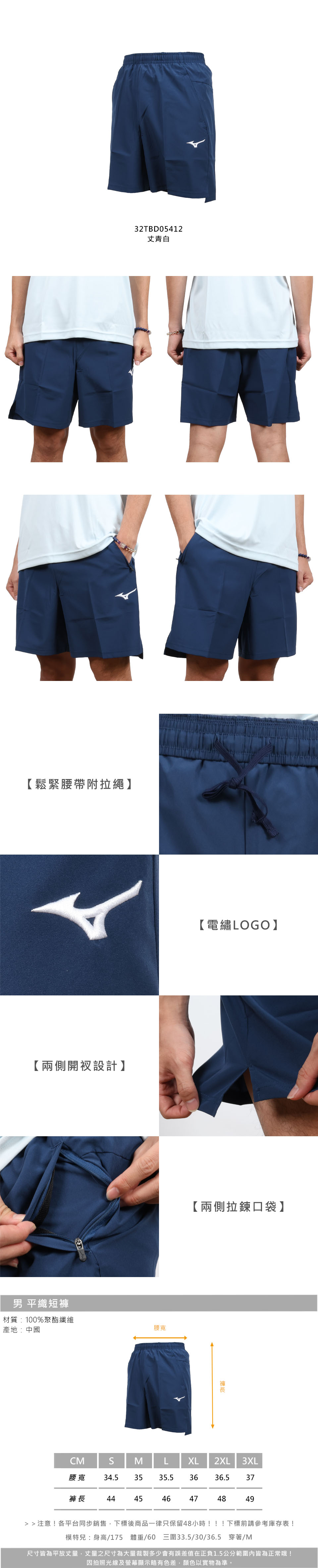 MIZUNO 男款平織短褲  32TBD05412 - 丈青白