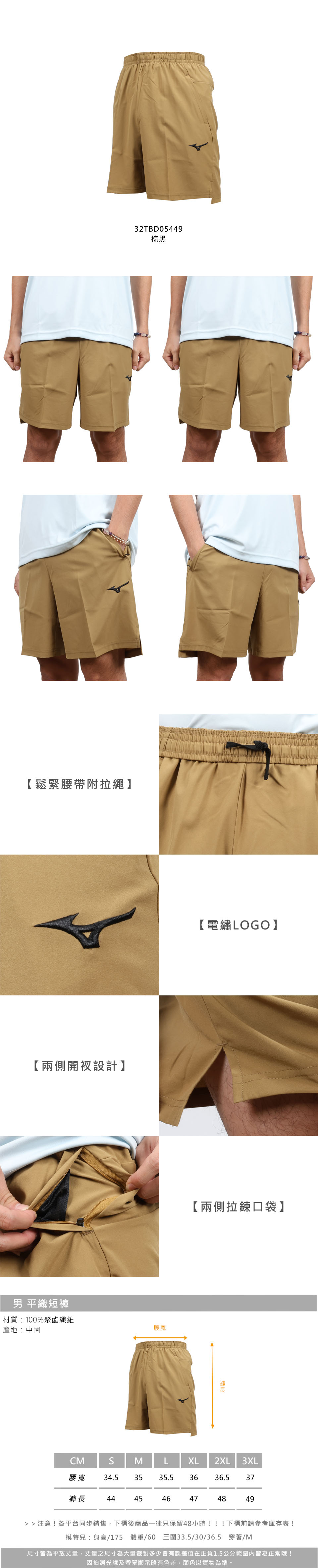 MIZUNO 男款平織短褲  32TBD05449 - 棕黑