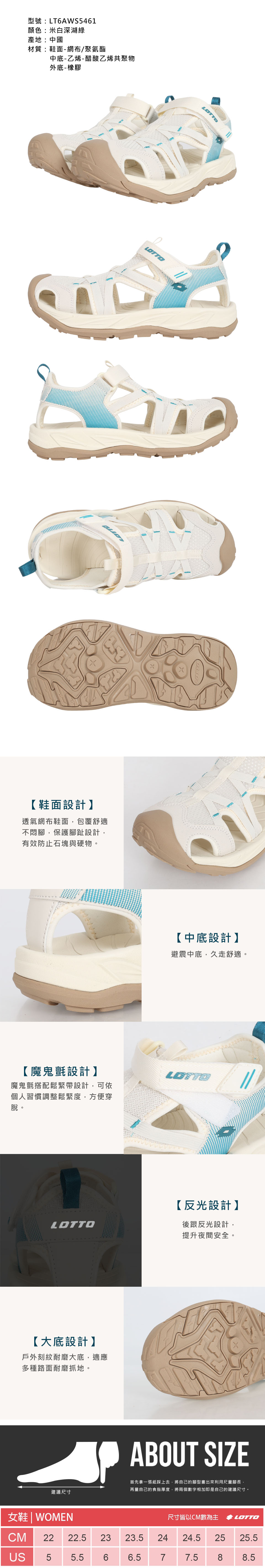 LOTTO 女款悠活護趾涼鞋  LT6AWS5461 - 米白深湖綠