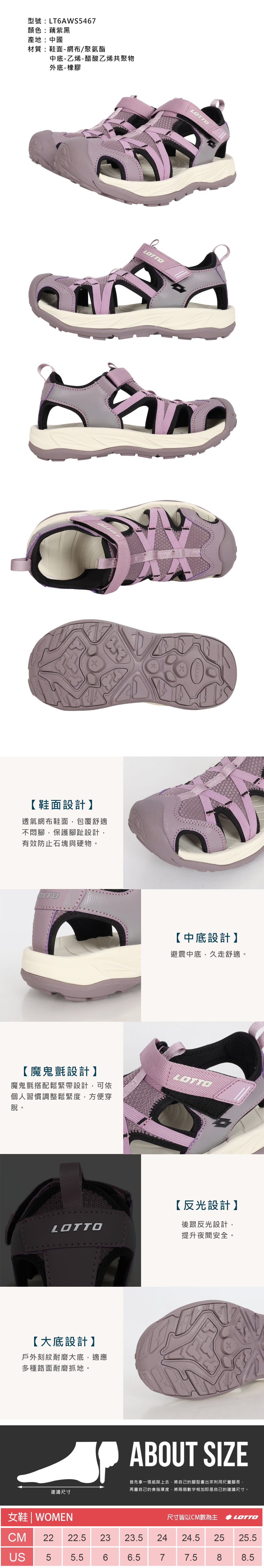 LOTTO 女款悠活護趾涼鞋  LT6AWS5467 - 藕紫黑