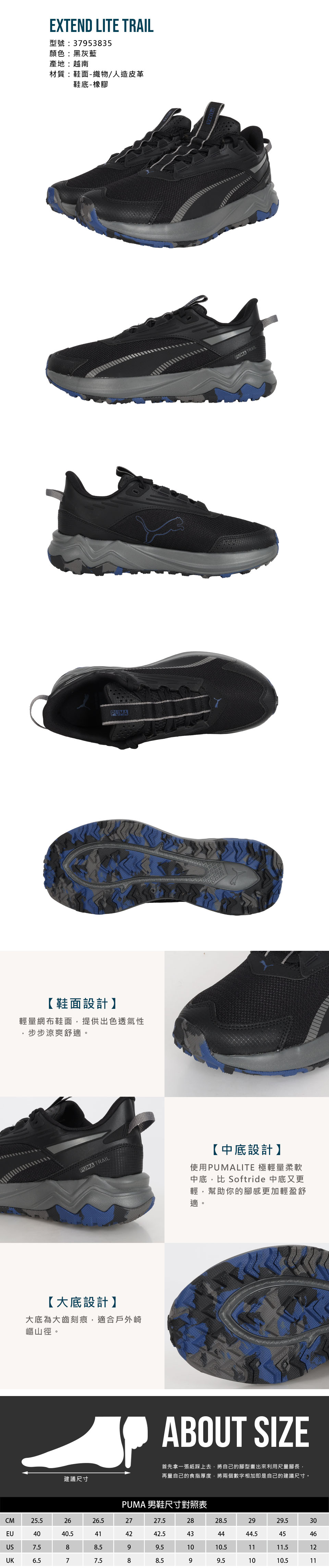 PUMA 男款越野慢跑鞋  @Extend Lite Trail@ 37953835 - 黑灰藍