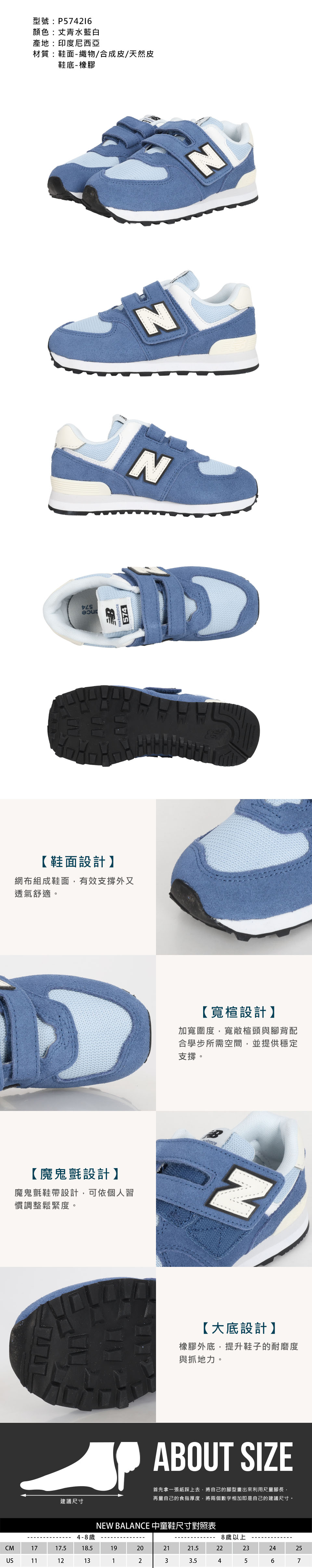 NEW BALANCE 中童復古慢跑鞋-WIDE  @574@ P5742I6 - 丈青水藍白