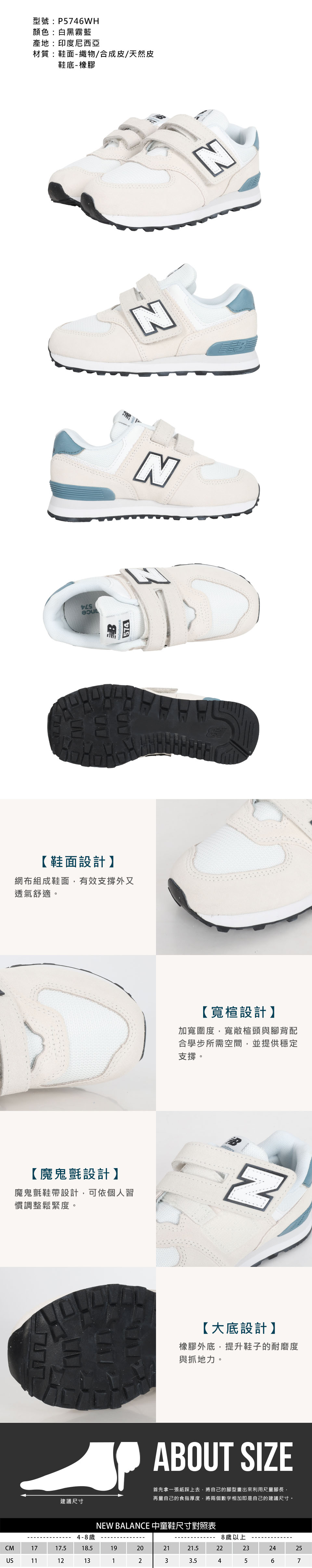 NEW BALANCE 中童復古慢跑鞋-WIDE  @574@ P5746WH - 白黑霧藍