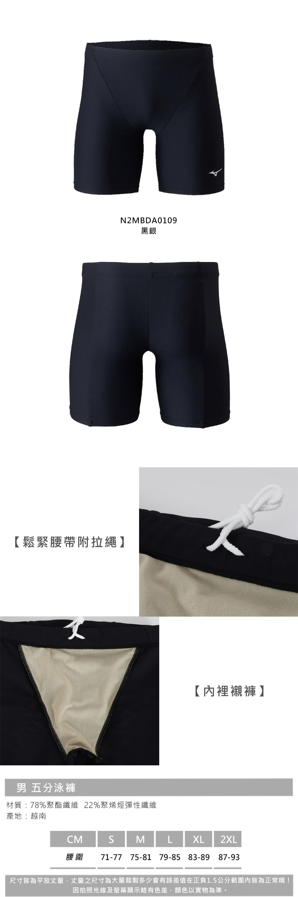 MIZUNO 男五分泳褲  SWIM N2MBDA0109