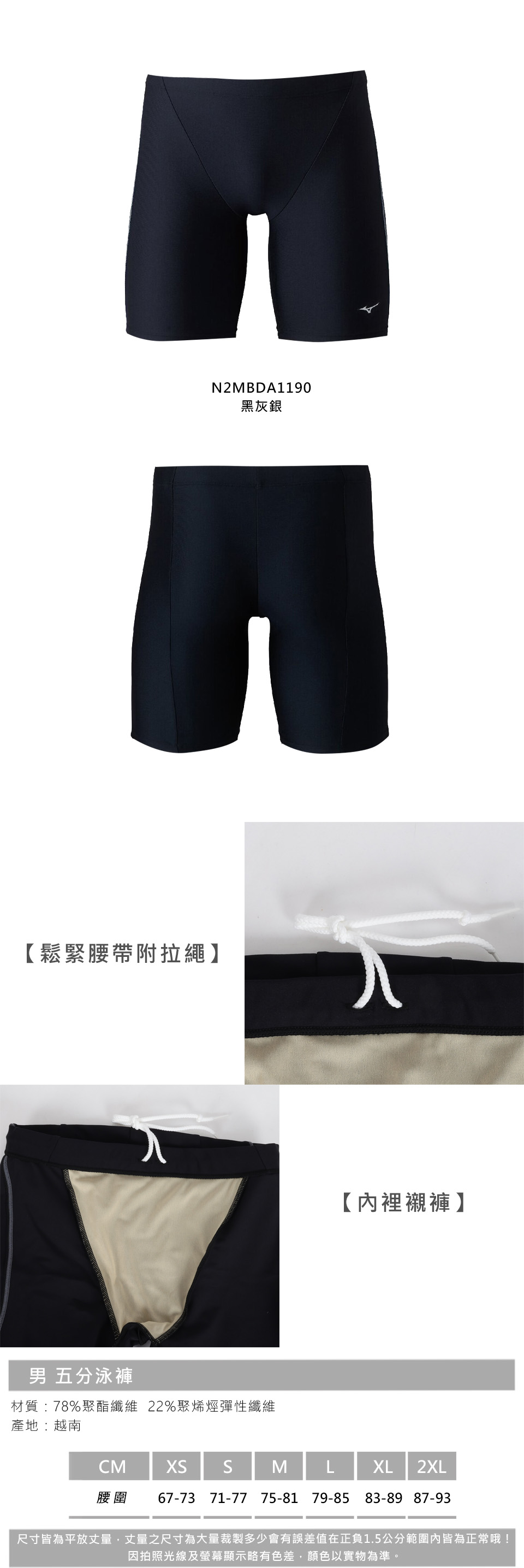 MIZUNO 男五分泳褲  SWIM N2MBDA1190