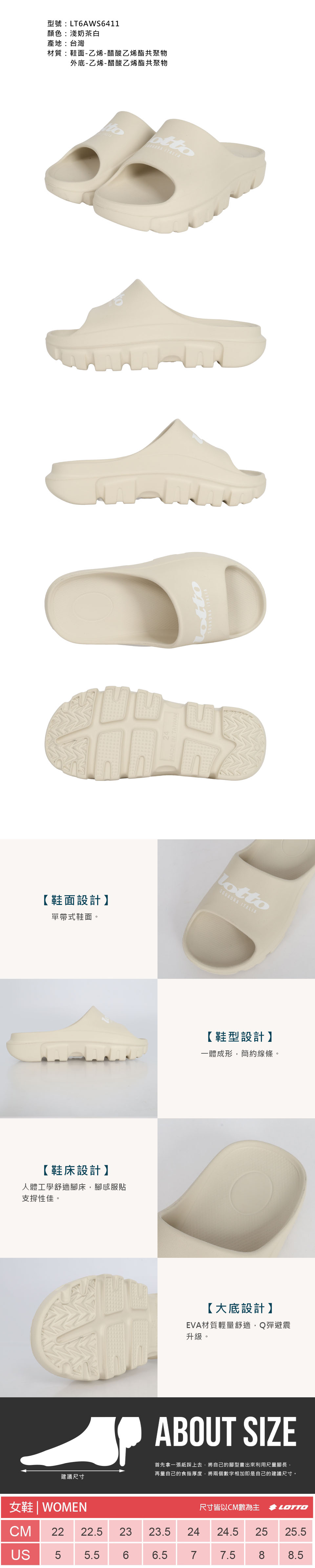 LOTTO 女款BOUNCY厚底紓壓拖鞋  LT6AWS6411 - 淺奶茶白