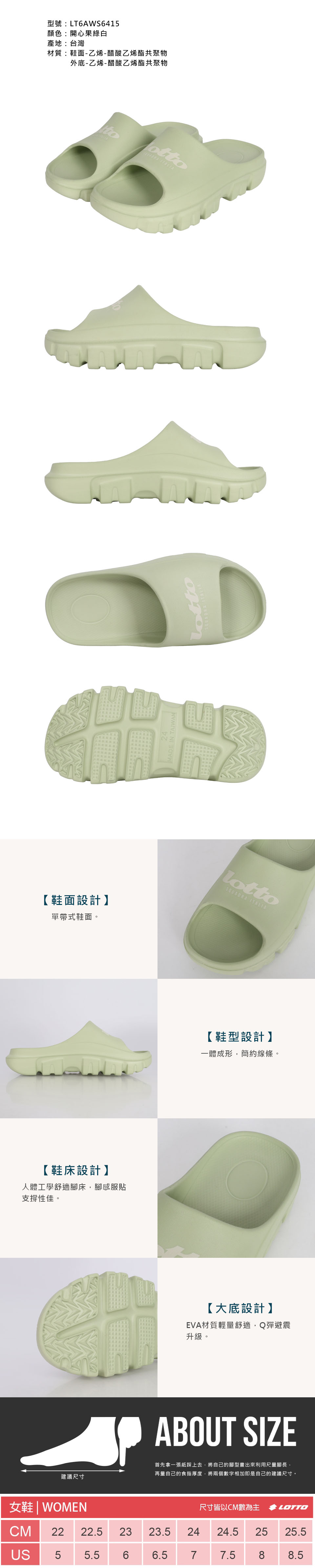 LOTTO 女款BOUNCY厚底紓壓拖鞋  LT6AWS6415 - 開心果綠白