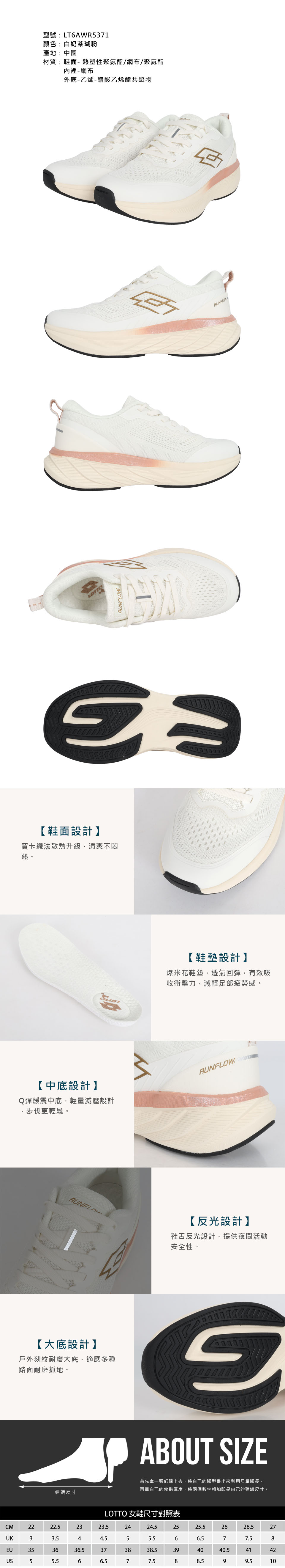 LOTTO 女款RUNFLOW 輕量避震跑鞋  LT6AWR5371 - 白奶茶瑚粉