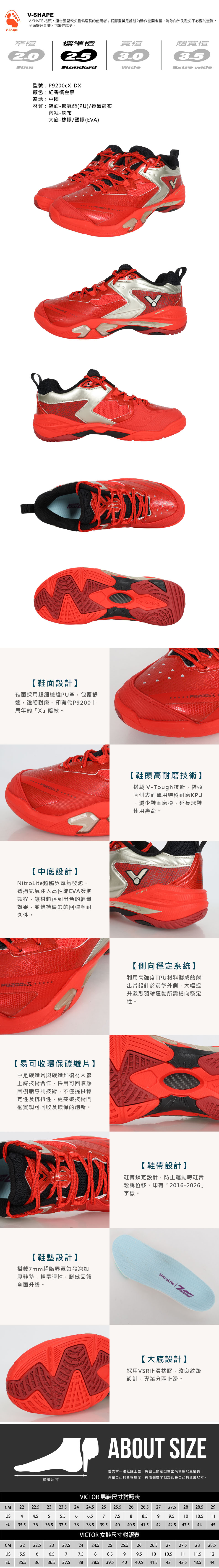 VICTOR 男女款專業羽球鞋-3E(10周年紀念款)  P9200cX-DX - 紅香檳金黑