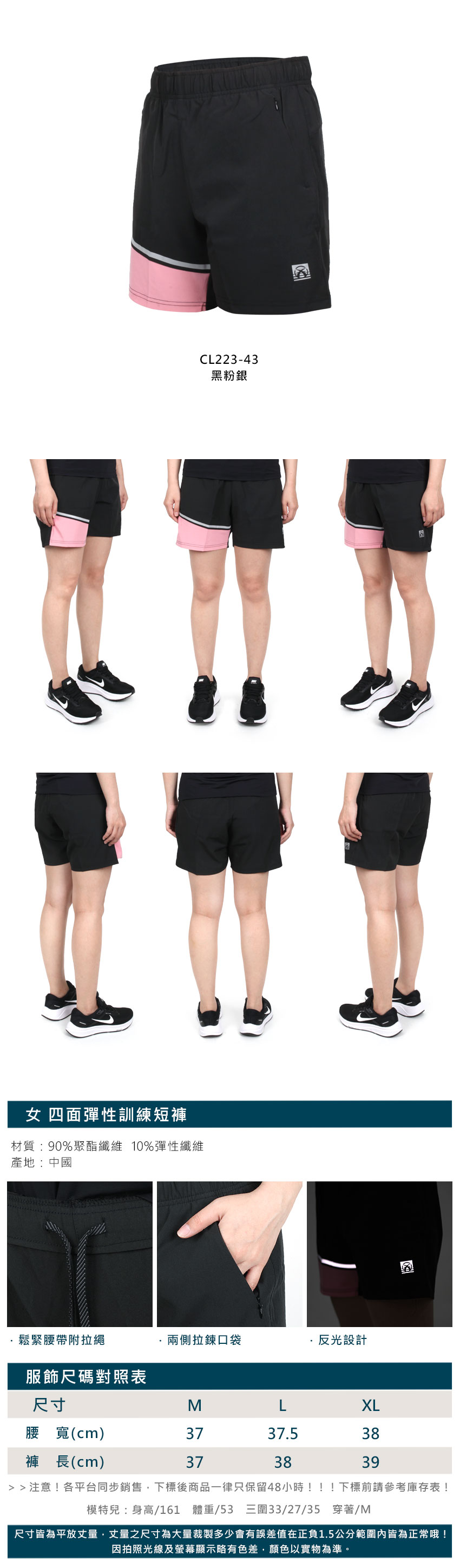 FIRESTAR 女款四面彈性訓練短褲 CL223-43 - 黑粉銀