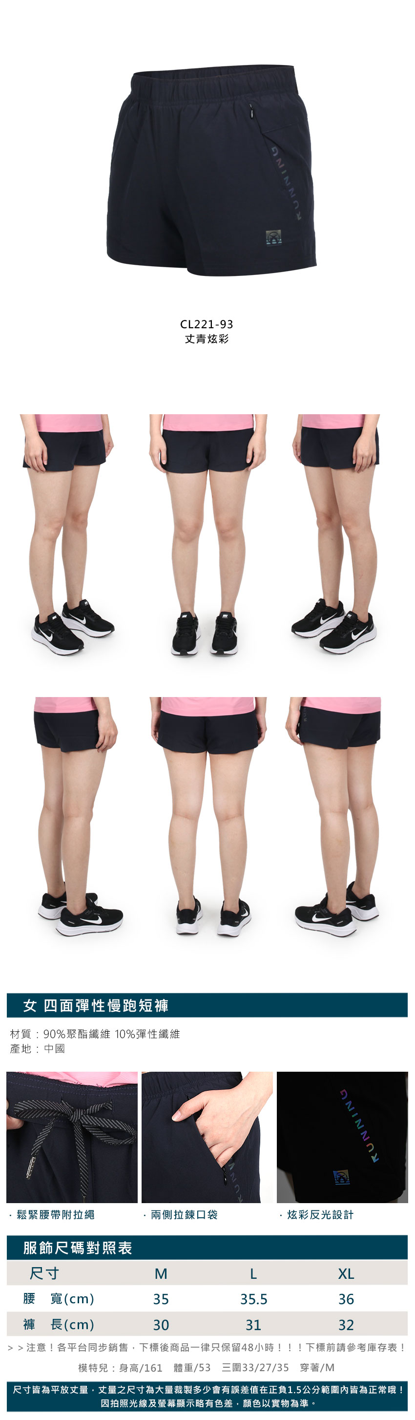FIRESTAR 女款四面彈性慢跑短褲 CL221-93 - 丈青炫彩