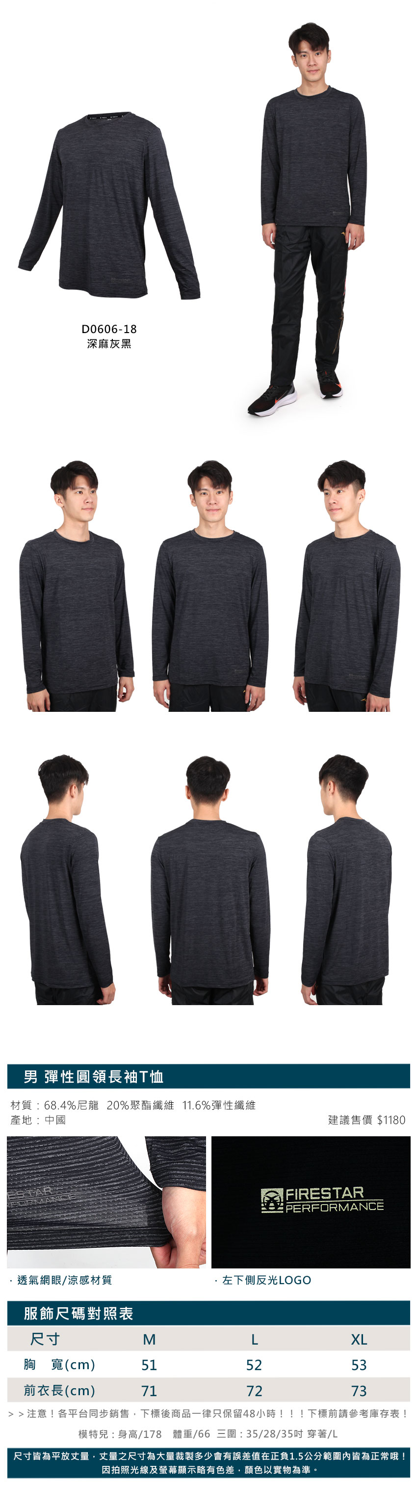 FIRESTAR 男彈性圓領長袖T恤 D0606-18
