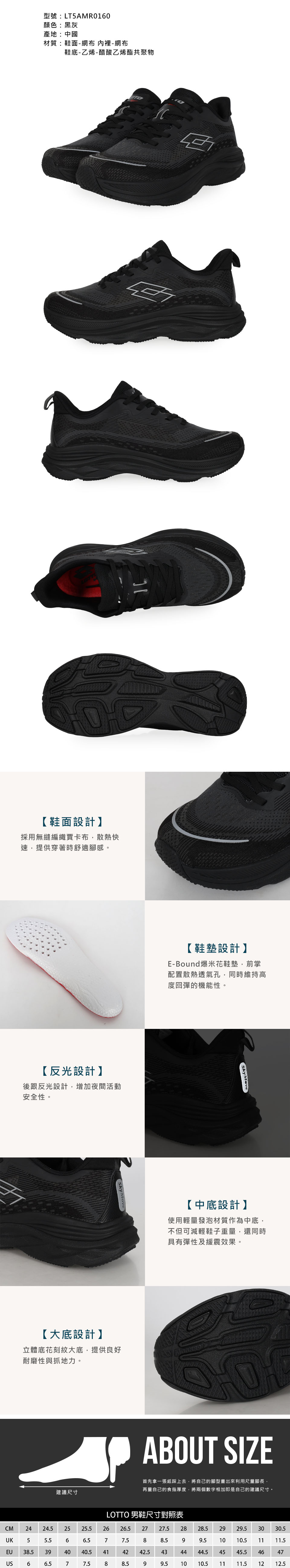 LOTTO 男款輕量避震慢跑鞋-2E  LT5AMR0160 - 黑灰