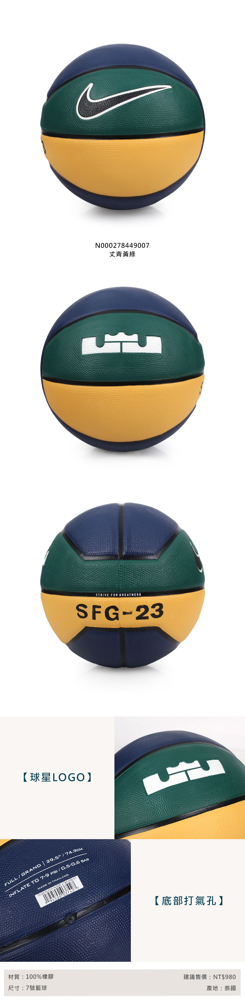 NIKE LEBRON PLAYGROUND 4P 7號籃球 N000278449007 - 丈青黃綠
