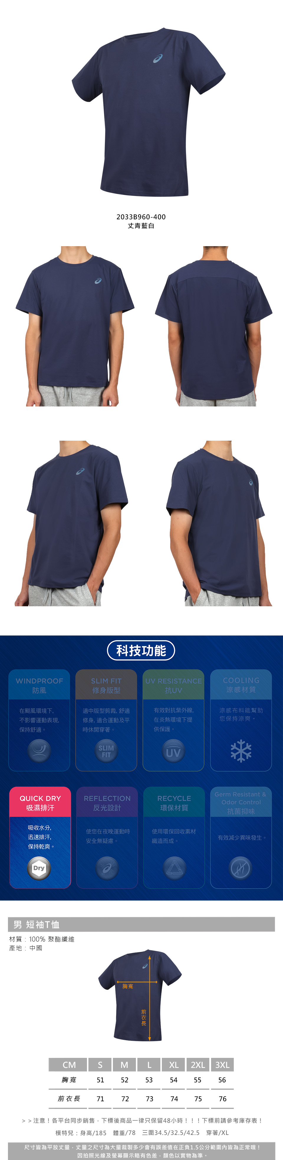 ASICS 男款短袖T恤  2033B960-400 - 丈青藍白