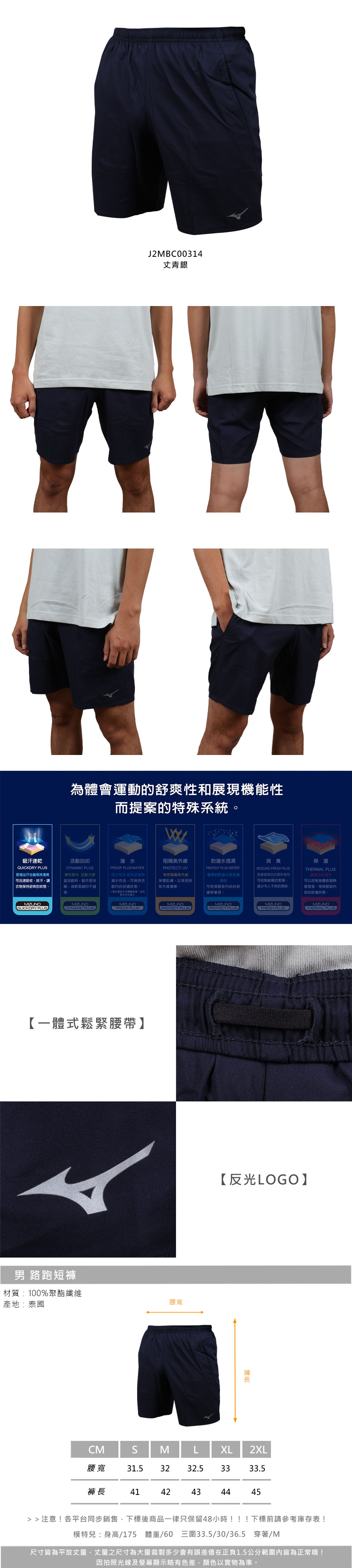 MIZUNO 男款路跑短褲  J2MBC00314 - 丈青銀