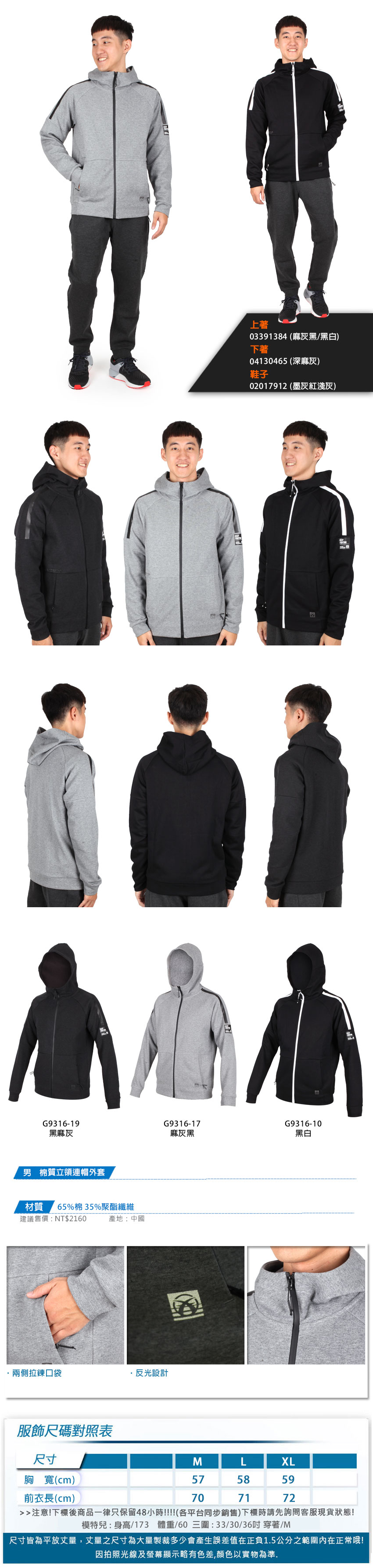 FIRESTAR 男款棉質立領連帽外套 G9316-10 - 黑白