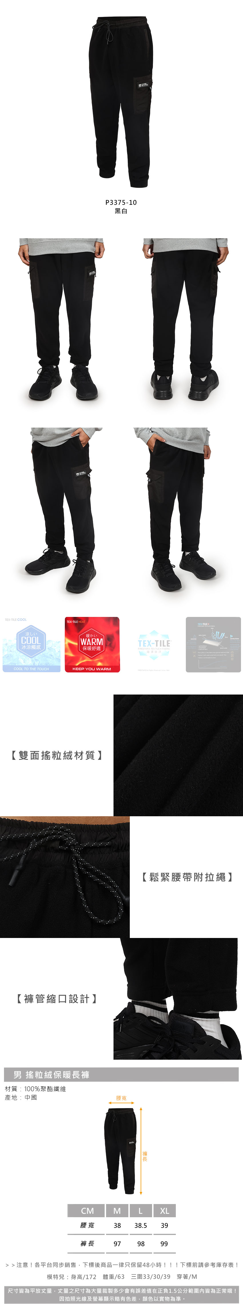FIRESTAR 男款搖粒絨保暖長褲  P3375-10 - 黑白
