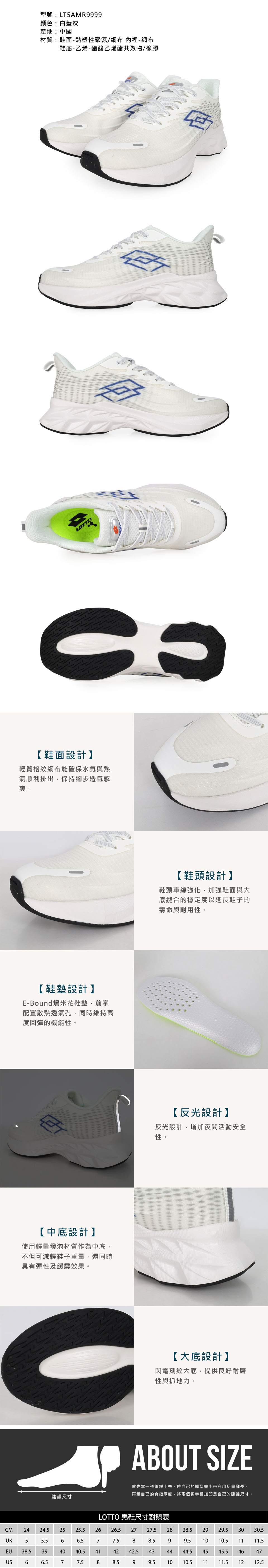LOTTO 男款輕量避震慢跑鞋-2E  LT5AMR9999 - 白藍灰