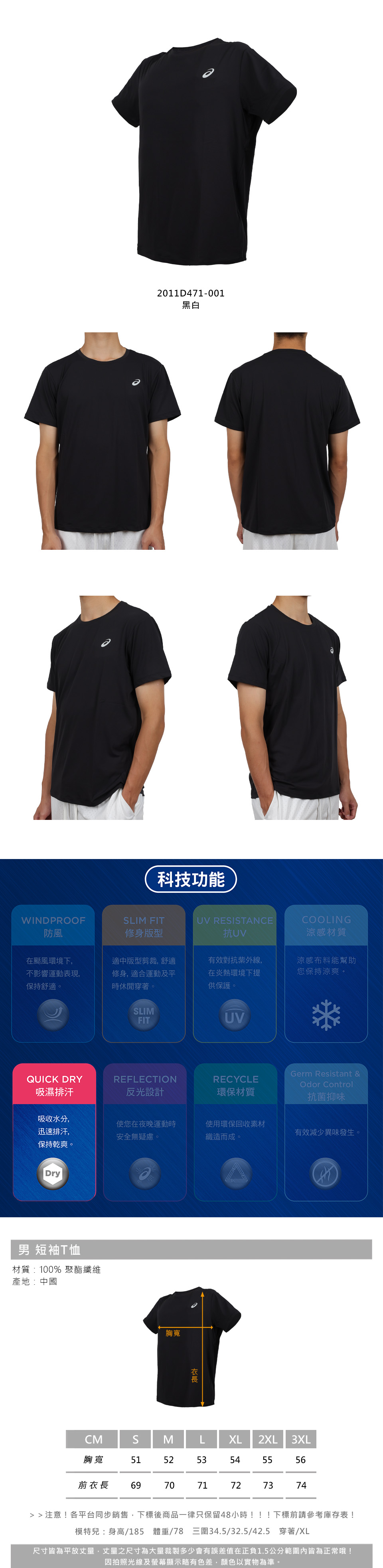 ASICS 男款短袖T恤  2011D471-001 - 黑白