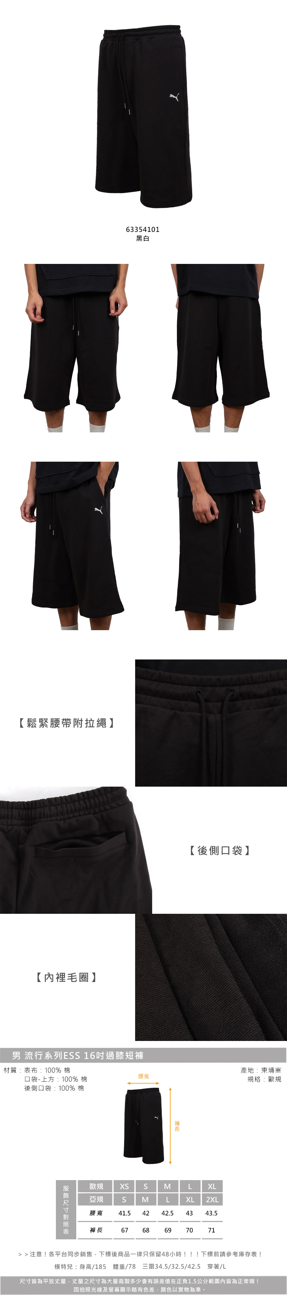 PUMA 男款流行系列ESS 16吋過膝短褲  63354101 - 黑白